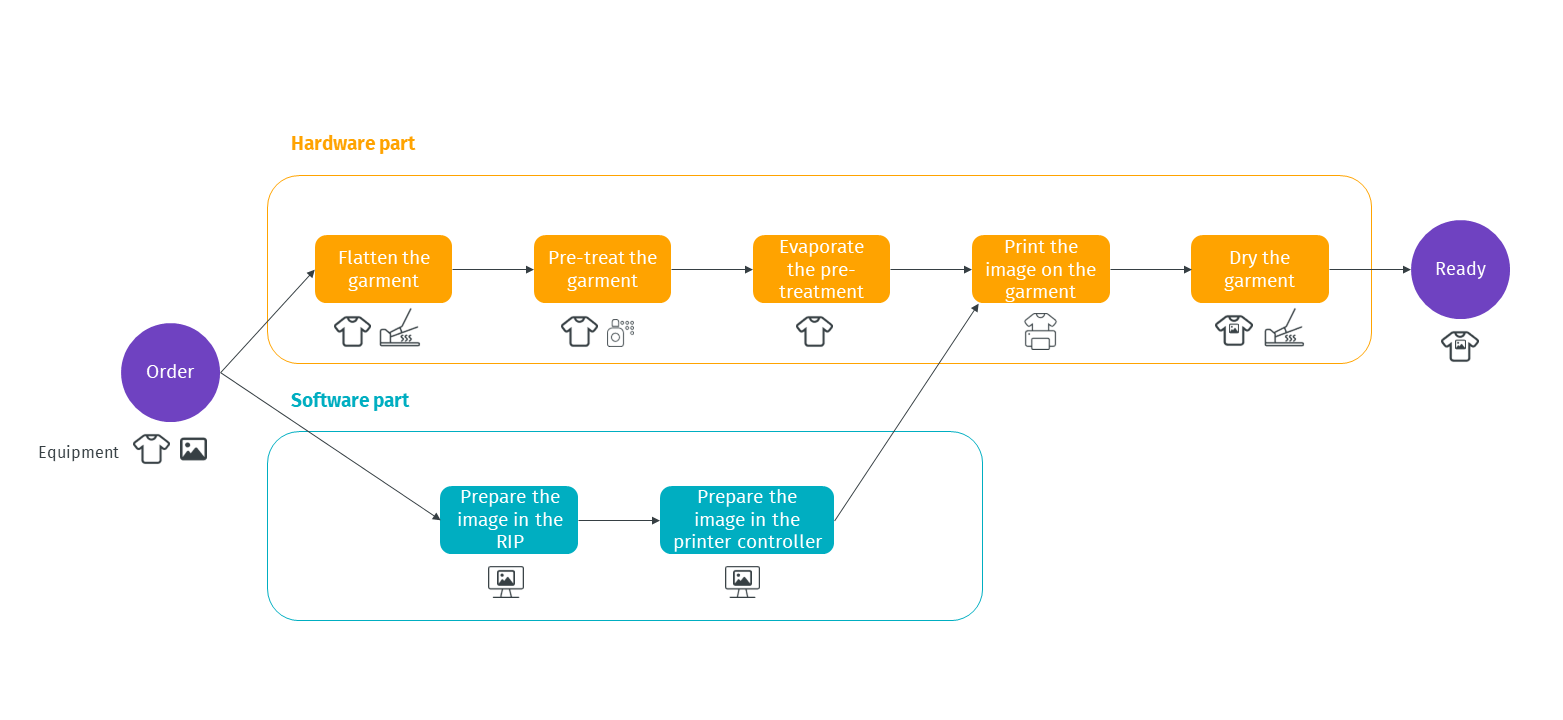 - A computer with a RIP software is required to prepare design files and convert them into digital files that can be printed on the garment.