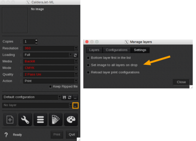 - Click on the ellipsis button [ ] next to the Layer selection to open the Manage Layers window. Then, go to the Settings tab to ensure that the option "Set image to all layers on drop" is disabled: