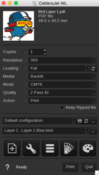- Close the Manage Layers window. Then, Select Layer 1 and set your printing configuration: