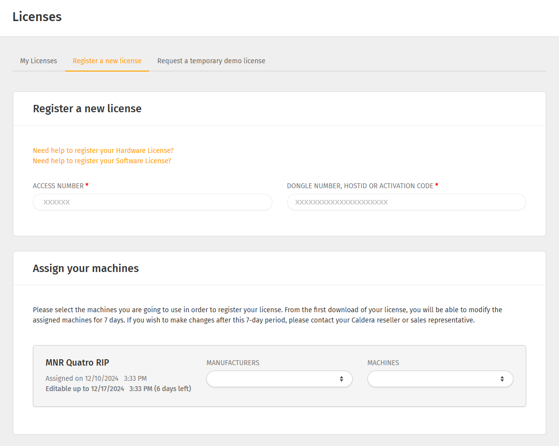 - Assign the printer ("MNR Quatro RIP") to the license: