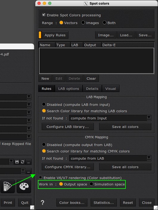 7) When using spot colors you will have the option to map these colors into the simulation space or the original output space.