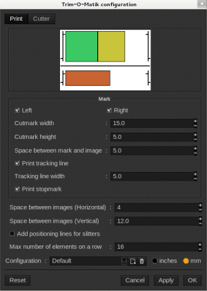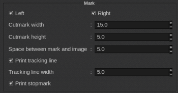 This option allows you to add marks on the job, specifically for positioning the slitters.