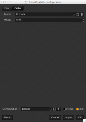 This option allows you to print a simple, continuous line on the left or the right of the block of printed images. It is meant to be used with X/Y cutters equipped with a sensor, and whose role is to adjust the vertical blades to correct the deformation of the media.