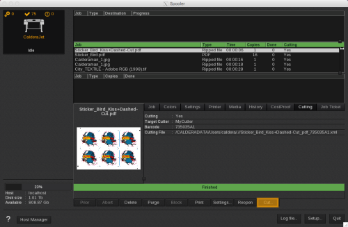 Once all print and cut parameters are correctly set up, the print can be launched. You can see its progression in the