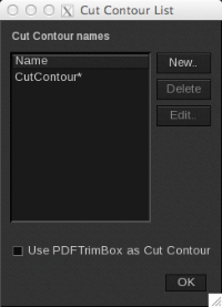 - Then click on the Edit Cut Contour list… button. The cut contour list appears: