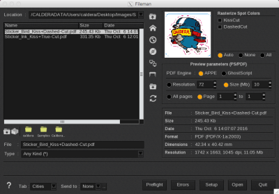 Before importing, FileMan displays the embedded spot colors and vector files. Each contour is associated with a spot color and has a specific name recognized by FileMan.
