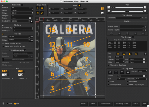 The poster creation allows you to create, for each tile, images that are automatically loaded into the ImageBar and then can be printed.