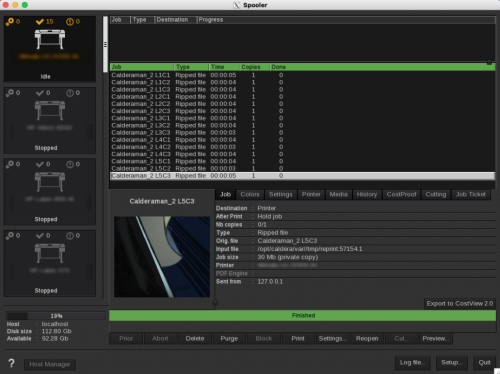 5- (Optional) Once done, go to the Spooler. You will notice that your tiles are being printed Line by line, bottom to top, right to left: