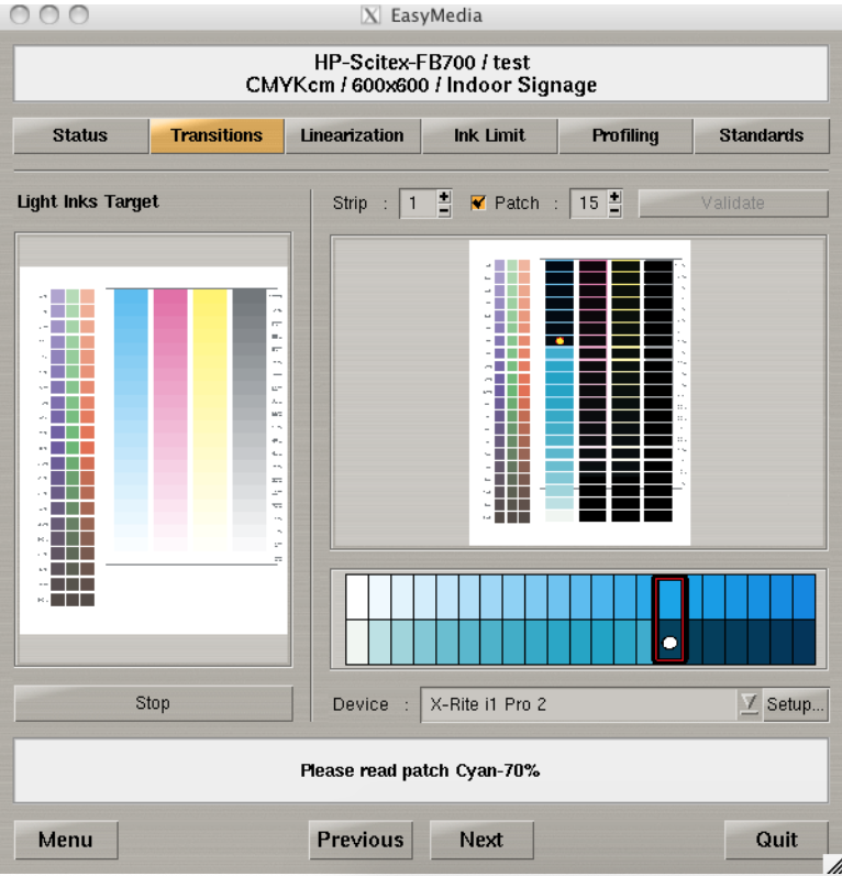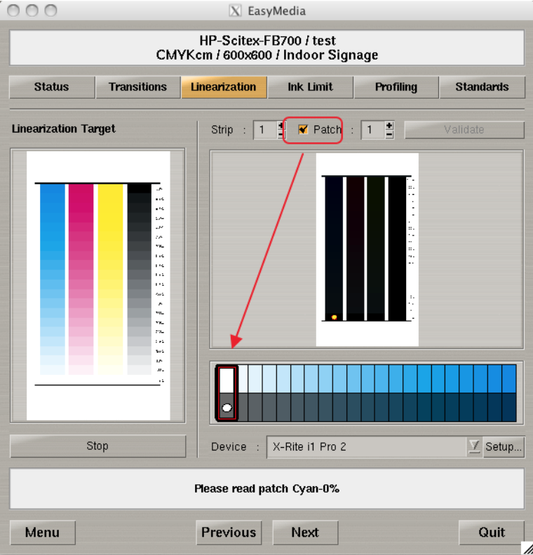 After printing the appropriate target, select the patch mode after the i1 white point calibration.