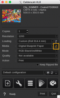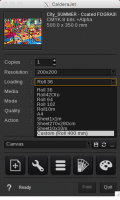 EasySelect is the capability of CalderaRIP to use the size and type of loaded media in the printer. This printer supports 3 levels of selection:
