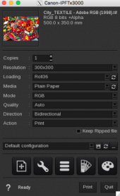 The Canon imagePROGRAF TX printers support the following graphic resolutions: 300x300 and 600x600 for contone mode and 1200x1200 for halftone modes.