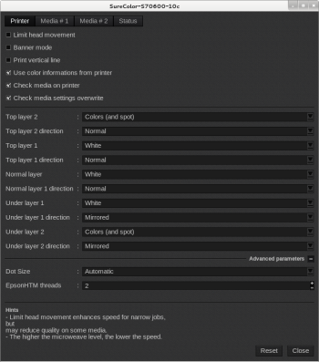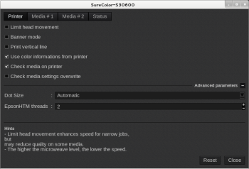 - EpsonHTM threads: used to do parallel calculation when EpsonHTM mode is chosen. If you set too many threads, the printing process may slow down.