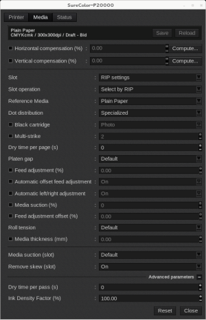 Reference Media: Select the reference media that most closely resembles the actual media. The reference media contains predefined settings that you can use to adjust your media parameters: