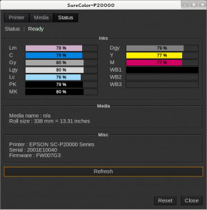 - Inks: information about the ink configuration and the inks levels in %.