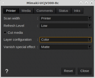 - Scan width: This option allows the user to limit the movement of the head to either the printer's full width or only the job's width. You can choose between Printer (the head scans all the printer's width) or Job (limits the head scan over the job's width only).
