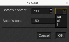 - In the window that appears, type the bottle's content and choose the unit in the drop menu (ml, cl, l).