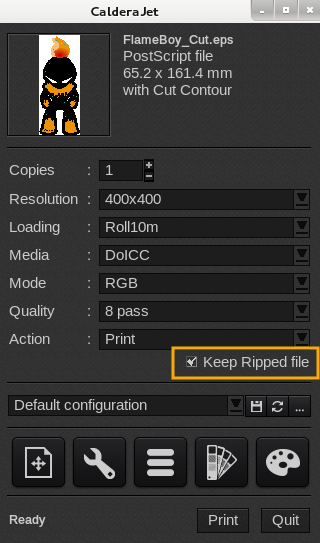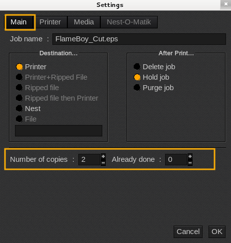 This function consists in modifying the number of copies to print. This one is very useful when you want to add copies, modify the number of copies to print, or re-print. In order to use this option, when you send the job you have to keep the box Keep Ripped file checked.
