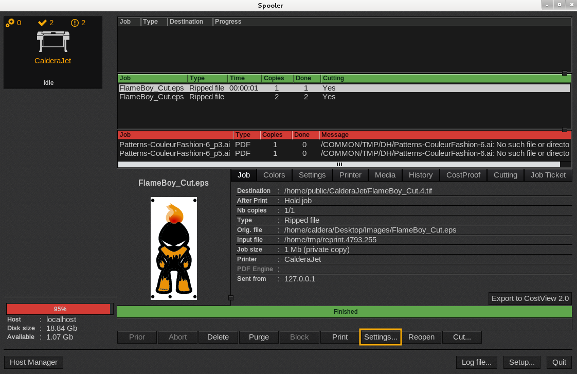 - Click OK to come back to the Spooler window.