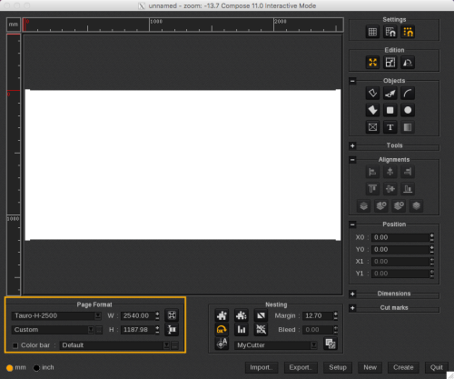 - Open Compose then, in the Page Format area, select the Tauro-H-2500: