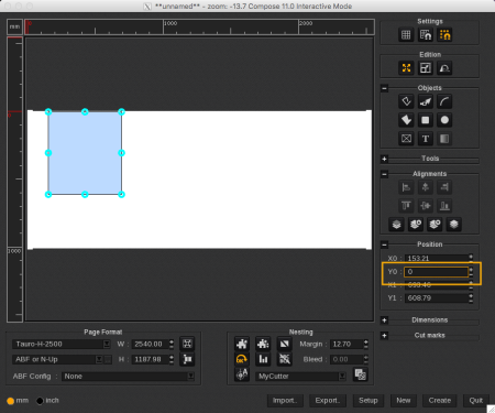 Please note that placement is not entirely free; all sheets must be aligned to the top, meaning their Y0 position in the Position area must be set to zero. This alignment is required by the printer engine.