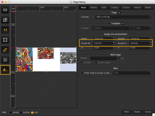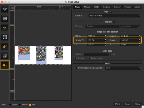 - Also, in the Page Setup, ensure that the job Orientation is set to "No Rotation" and the Scale is set to 100%.