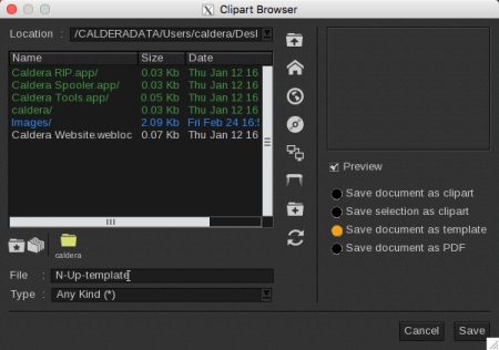 Next, select "Save Document as Template" on the right side of the window. Browse to the desired location to save your template, enter a file name, and click Save when you are ready: