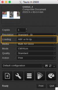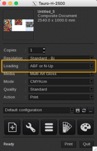- You can find your Composed document in the ImageBar. Drag it into the Print module. Before launching the print, ensure that you have selected either ABF or N-Up for the Loading option: