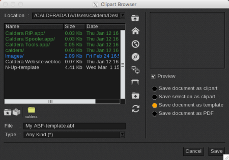 /opt/caldera/lib/DRIVERS/MISC/Tauro_ABF: - Then restart Compose. Your template should be available in the list of the "ABF configurations":