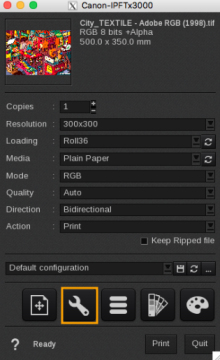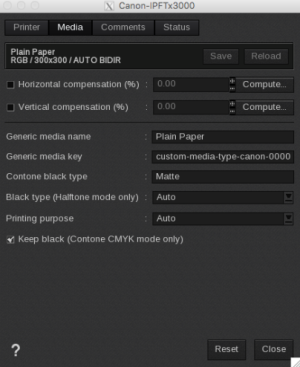 - Keep black: keep black for CMYK contone modes. When this option is enabled, pure black will be printed only using Matte Black, Normal black inks if available on the printer. When disable black can be a mix other inks depending on the internal printer color separation.