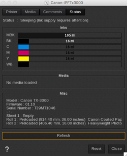 - Inks: information about Inks levels