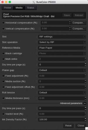 - Media thickness: Enter the media thickness. If deactivated, the reference media thickness will be used.