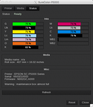- Misc: Complementary info about the printer (model, serial number, firmware version).