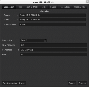 - You have to select RAWIP connection in ServerAdmin, and put the IP address of the printer. The port doesn't matter, it's fixed in the driver.