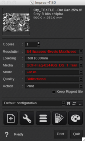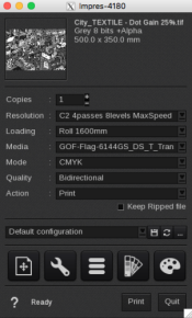 Paper from GOF (Georg and Otto Friedrich), reference 6144GS, used for flags. DySubli inks, calibrated in Transmissive mode. Paper: TransJet-Boost-85gr. Transfer temperature: 200°C, sublimation time: 90 seconds. - Senfa-Backlit-AquaPearl_DB_R_195C-25s