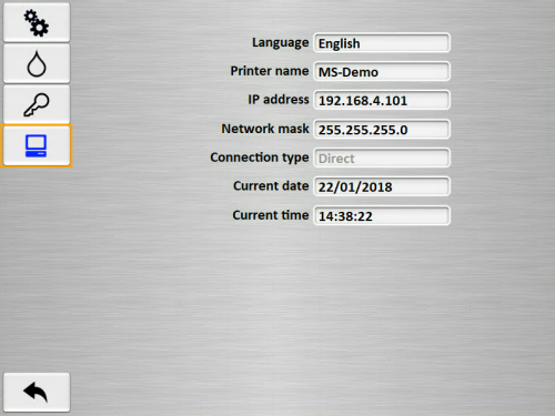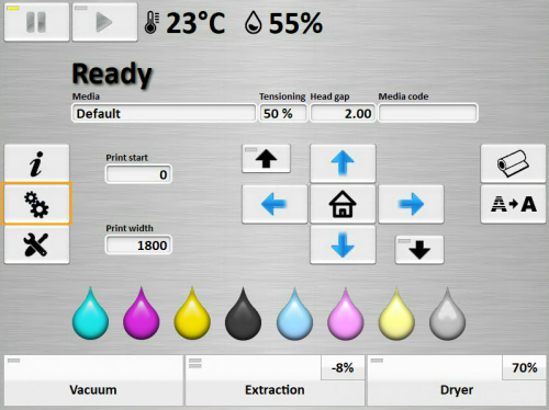 This article details the supported inks for the MS Impres 3180, 4180 and 4320. It also provides instructions for connecting the MS Qwizard touchscreen control panel to the printer, including necessary settings adjustments and requirements for administrative access.