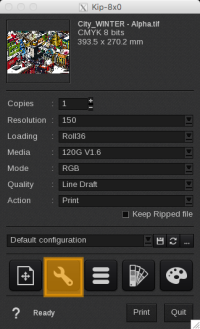 - Save: when you click on this button, the current media settings are saved to the selected media profile (printer, media, resolution, mode) so there will be applied for any new job using the same print configuration. If you don't save, the changes you made are only applied to the current job.