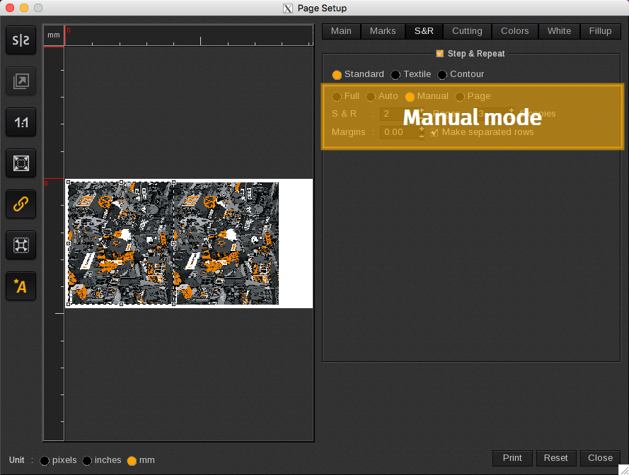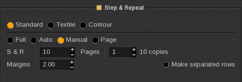 The Manual mode option allows you to specify the number of copies per page and the number of pages. You can place all copies on the same page if they fit or use the multipage option. Each page is a duplicate of the first page.