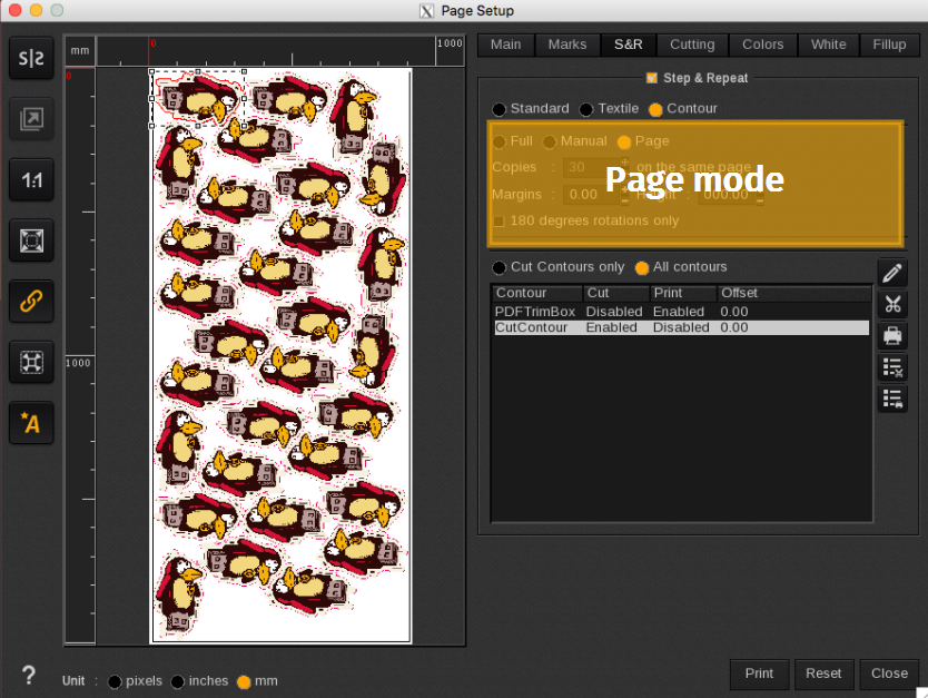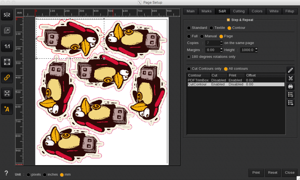 - Sheet: Fills the sheet with the maximum number of copies (similar to the Full mode but without the ability to choose the number of copies and to duplicate the sheet).