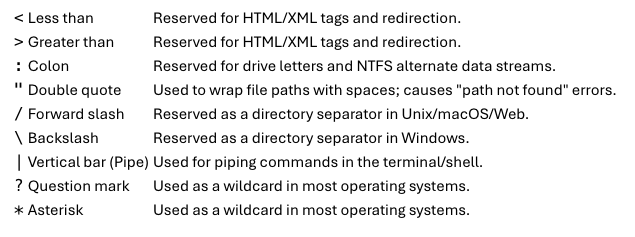 "If you can't type the character on a standard US-English keyboard without holding 'Shift' (other than the underscore or hyphen), don't use it."